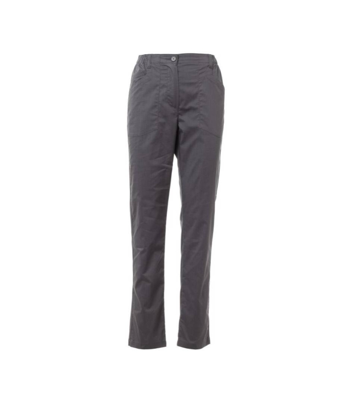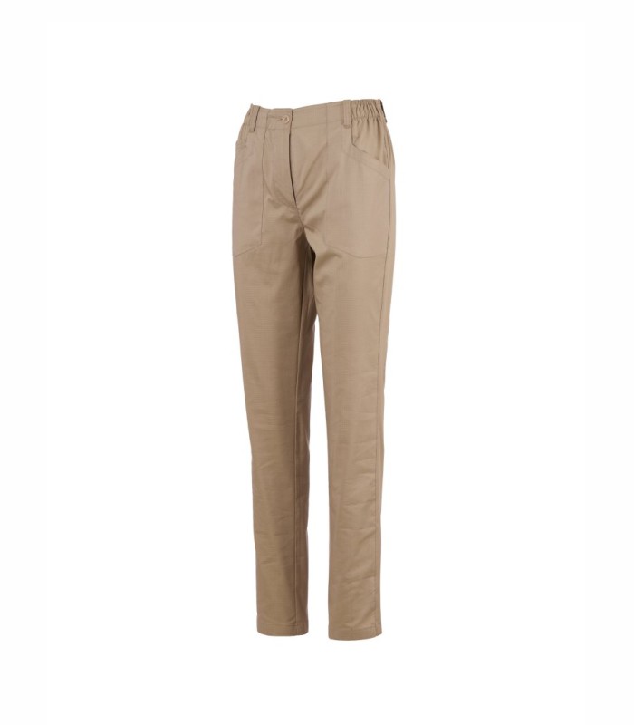 Ženske hlače, višenamjenske, izrađene od nepoderivog pamučnog materijala i materijala Lycra® T400®, s izvrsnim elastičnim i prozračnim svojstvima, s bočnim umetcima od udobne mrežaste tkanine po cijeloj duljini vanjskog dijela noge. Patentni zatvarač i gumb za zatvaranje, petlje za pojas oko struka, uzica za znoj s unutarnje strane struka. Na prednjoj strani imaju dva oblikovana džepa i džep za novčiće. Na stražnjoj strani nalazi se džep s preklopom. Odgovarajući mali obruči za ojačanje.
