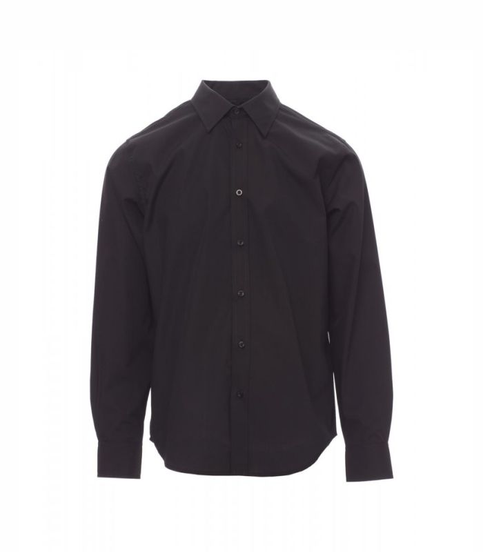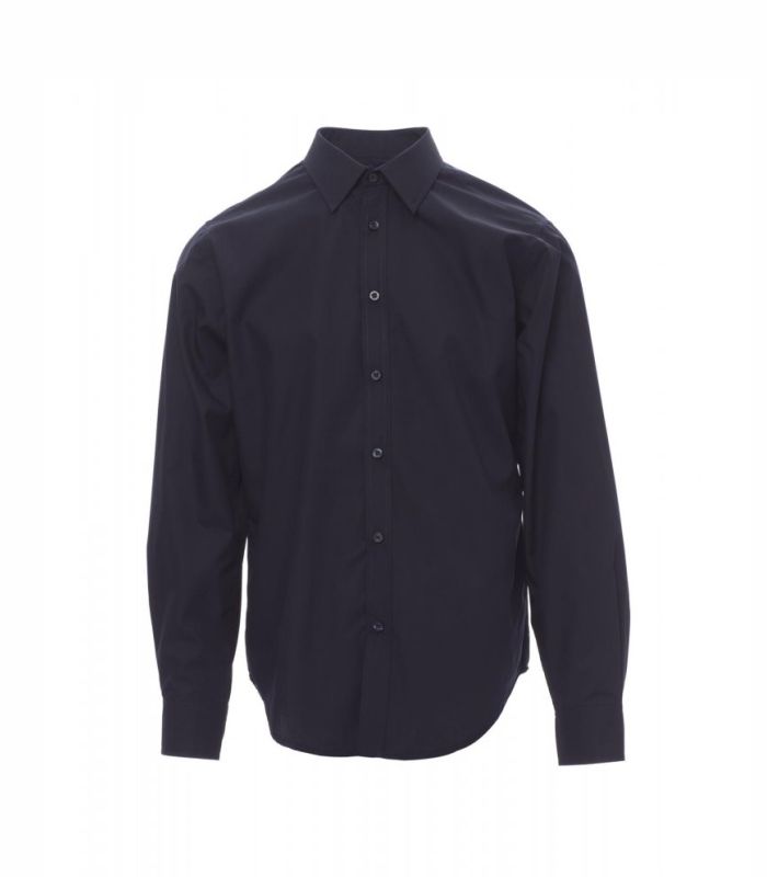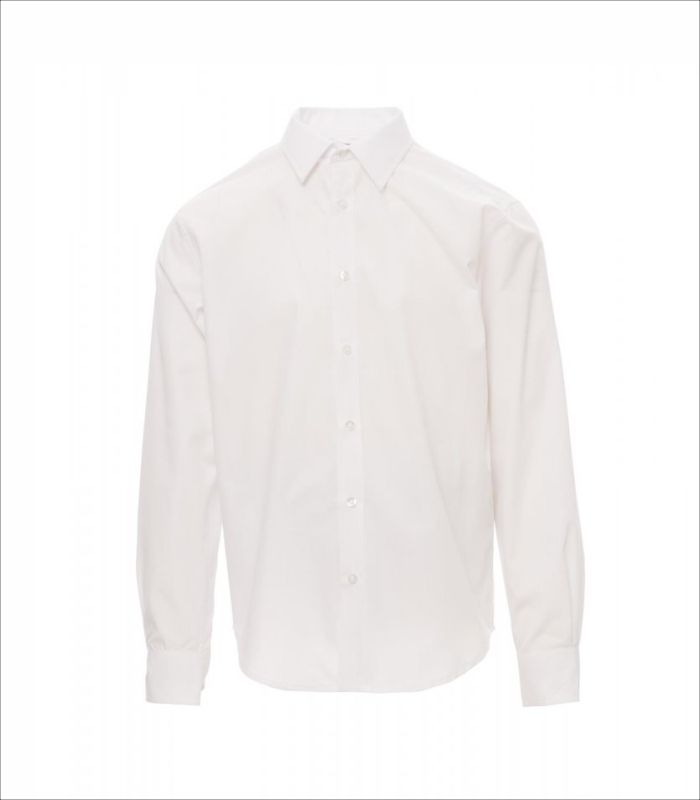 Muška blago strukirana košulja od fine češljane tkanine s talijanskim ovratnikom, manžetnom s dva gumba i rupicom, vidljivim šavom i gumbima u odgovarajućoj boji. Unutrašnjost je glatka, s naborima na pola leđa. Tretman tkanine ‘easy care’.