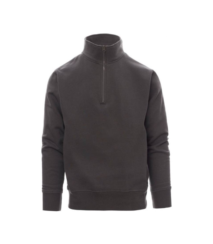 Muška majica s kapuljačom s patentnim zatvaračem do pola majice u odgovarajućoj boji, izrađenim od plastike s metalnim klizačem, okruglim rukavima, rebrastom rastezljivom trakom u području manžetna i struka te ojačanim šavovima.