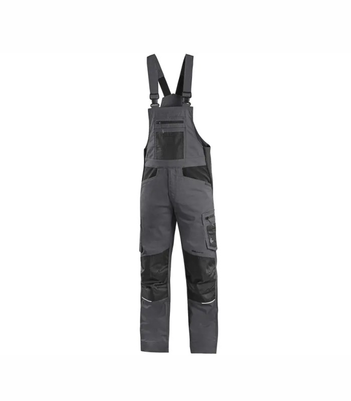 Muške radne hlače s tregerima izrađene od materijala Move & Flex, koji je izuzetno izdržljiv, fleksibilan i omogućuje nesmetano kretanje. Bočne strane imaju elastičnu traku za jednostavno oblačenje i bolju prilagodbu tijelu. Stražnji dio hlača ojačan je radi veće izdržljivosti i duljeg vijeka trajanja odjevnog predmeta. Ergonomska koljena ojačana su 600D poliesterom. Hlače imaju džep s patentnim zatvaračem i podijeljenim džepnim pretincem na prsima, prednje džepove, stražnji džep te bočne multifunkcionalne džepove ojačane 600D poliesterom. Reflektirajući detalji povećavaju sigurnost u uvjetima smanjene vidljivosti.