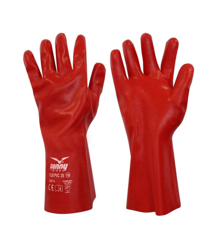Rukavice od PVC-a, 35 cm, presvučene pamukom Interlock. Karakteristike: vrlo otporno, robusno. Prednosti: kroj, prianjanje, zaštita, otporno na tekućine, praktično. Područja upotrebe: za rukovanje u prisutnosti ulja, masnoća, tekućina. Najmanja jedinica za prodaju: 1 tucet (12 parova).