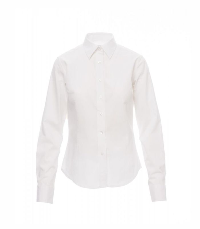 Ženska strukirana košulja od fine češljane tkanine s talijanskim ovratnikom, naborima sprijeda i straga, manžetnom s dva gumba i rupicom, vidljivim šavom i gumbima u odgovarajućoj boji. Unutrašnjost je glatka.