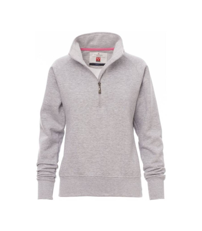 Ženska majica s kapuljačom s istobojnim poludugim plastičnim patentnim zatvaračem s metalnim klizačem, raglan rukavima, rastezljivim rebrastim manžetnama i porubom, pojačanim šavovima.