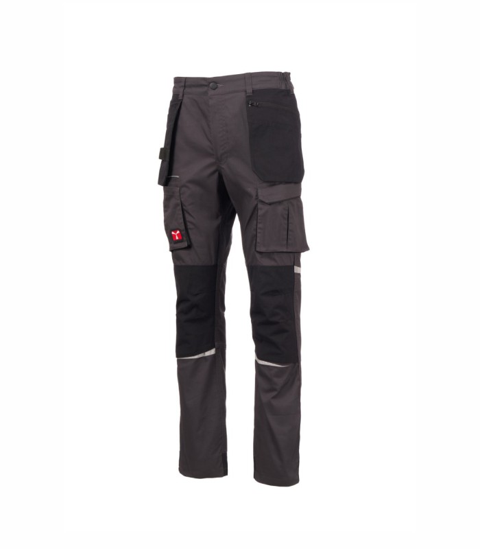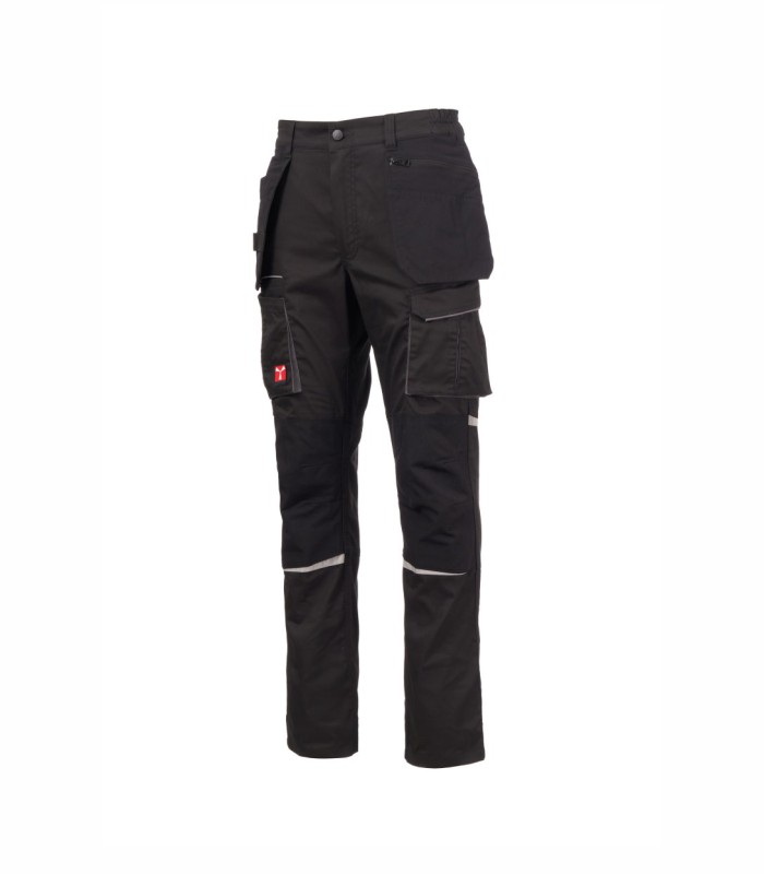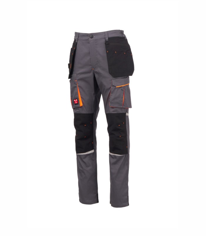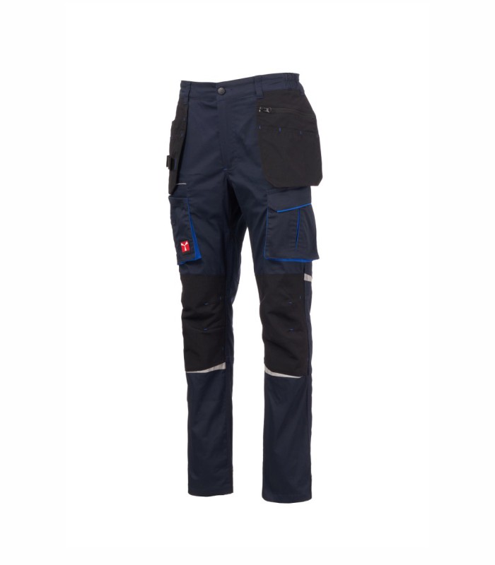 Rastezljive uniseks hlače za sva godišnja doba s bočnim elastičnim trakama, petljama za pojas oko struka, patentnim zatvaračem i prilagođenim gumbom. Dva plutajuća džepa, od 500D Oxford najlona, umetnuta u pojas: jedan opremljen držačem za olovke i remenom za alat; jedan s patentnim zatvaračem i džepovima za pohranu alata. S prednje strane imaju dva oblikovana džepa, na desnoj strani džepić za kovanice, a na lijevoj strani sigurnosni džepić zatvoren patentnim zatvaračem. Na prednjoj strani lijeve noge imaju džep s ušivkom, preklopom sa zatvaranjem na čičak i držačem za značke. Na prednjoj strani desne noge nalaze se: džepić za držanje pametnog telefona s reflektirajućim obrubom i džep s ušivkom. Na objema nogama nalaze se držač štitnika od najlona Oxford 500D od kontrastne tkanine s otvaranjem odozdo i reflektirajući umetci. Na stražnjoj strani nalaze se: džep sa zatvorenim preklopom sa zatvaranjem na čičak (lijeva noga), jedan otvoren džep s 2 reflektirajuće trake i jedan džep za držanje metra (desna noga), reflektirajući umetci u visini koljena i zaštitna traka donjeg obruba od kontrastne tkanine na obje noge. Šavovi s trostrukim prošivom na preponama s unutarnje i vanjske strane noge. Kontrastni obruči za ojačanje na raznim mjestima. Glavne veličine (talijanske) 48-50-52 imaju pravilnu unutrašnjost noge od 82 cm.