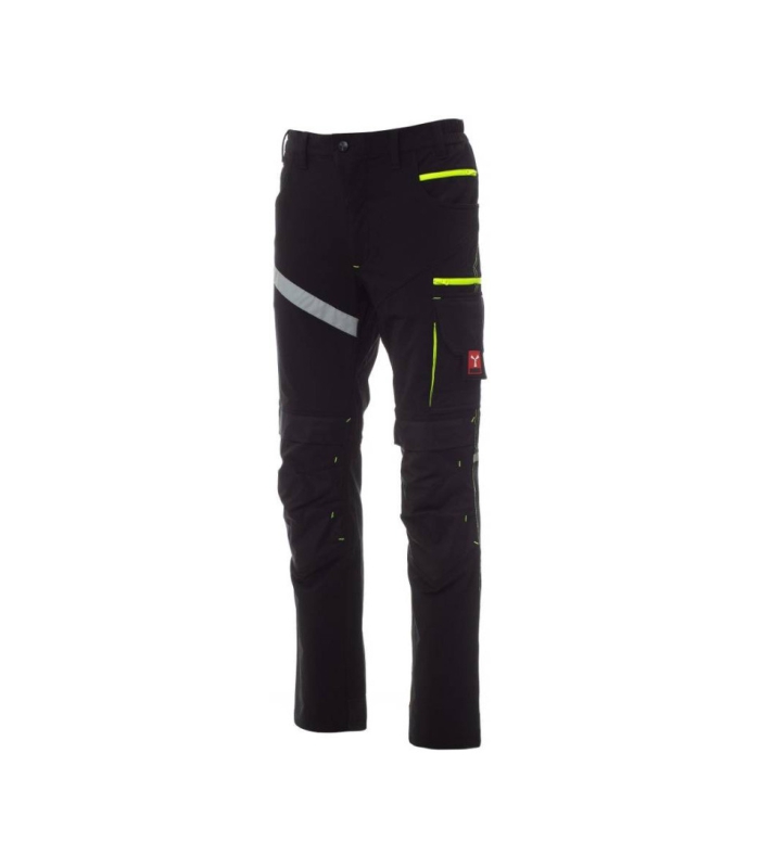Uniseks hlače rastezljive u sva 4 smjera za sva godišnja doba s bočnim elastičnim trakama, petljama za pojas oko struka, patentnim zatvaračem i prilagođenim gumbom. S prednje strane imaju dva okrugla džepa, na desnoj strani džepić za kovanice, a na lijevoj strani sigurnosni džepić zatvoren patentnim zatvaračem. Na prednjoj strani lijeve noge imaju 3 džepa: vodoravni džep zatvoren patentnim zatvaračem, džep s oblikovanim preklopom, zatvaranjem na čičak i držačem za značke te mali okomiti džep zatvoren patentnim zatvaračem. Na prednjoj strani desne noge nalazi se reflektirajuća traka. Na objema nogama nalazi se držač štitnika s otvaranjem odozgo. Na stražnjoj strani nalaze se: džep za zatvorenim preklopom sa zatvaranjem na čičak, džep bez preklopa s 2 reflektirajuće trake, prsten za držanje čekića (desna noga), otvoreni džep za držanje metra za mjerenje (desna noga), džep za držanje telefona s preklopom i čičkom (desna noga), reflektirajući umetci u visini koljena (obje noge) i zaštitna traka donjeg obruba od kontrastne tkanine (obje noge). Također postoje bočni prošivi i kontrastni obruči za ojačanje na raznim mjestima. Glavne veličine (talijanske) 48-50-52 imaju pravilnu unutrašnjost noge od 82 cm.