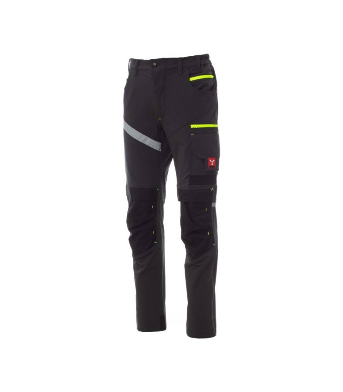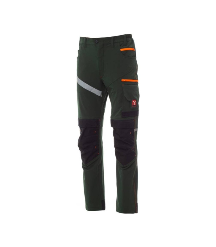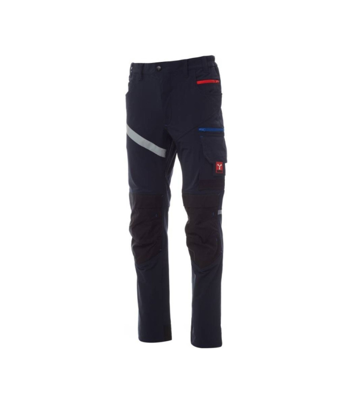 Uniseks hlače rastezljive u sva 4 smjera za sva godišnja doba s bočnim elastičnim trakama, petljama za pojas oko struka, patentnim zatvaračem i prilagođenim gumbom. S prednje strane imaju dva okrugla džepa, na desnoj strani džepić za kovanice, a na lijevoj strani sigurnosni džepić zatvoren patentnim zatvaračem. Na prednjoj strani lijeve noge imaju 3 džepa: vodoravni džep zatvoren patentnim zatvaračem, džep s oblikovanim preklopom, zatvaranjem na čičak i držačem za značke te mali okomiti džep zatvoren patentnim zatvaračem. Na prednjoj strani desne noge nalazi se reflektirajuća traka. Na objema nogama nalazi se držač štitnika s otvaranjem odozgo. Na stražnjoj strani nalaze se: džep za zatvorenim preklopom sa zatvaranjem na čičak, džep bez preklopa s 2 reflektirajuće trake, prsten za držanje čekića (desna noga), otvoreni džep za držanje metra za mjerenje (desna noga), džep za držanje telefona s preklopom i čičkom (desna noga), reflektirajući umetci u visini koljena (obje noge) i zaštitna traka donjeg obruba od kontrastne tkanine (obje noge). Također postoje bočni prošivi i kontrastni obruči za ojačanje na raznim mjestima. Glavne veličine (talijanske) 48-50-52 imaju pravilnu unutrašnjost noge od 82 cm.
