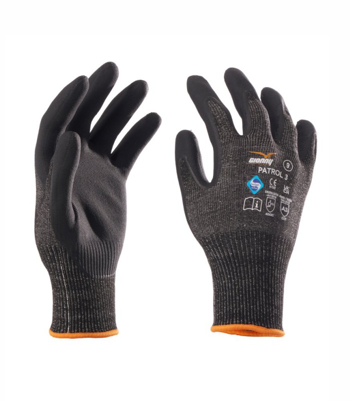Rukavice sa zaštitom od rezanja izrađene od pređe HPPE 13G, s pletenom manžetnom, dlan presvučen nitrilnom mikropjenom kako bi se omogućilo izvrsno prianjanje. Značajke: snažno. Prednosti: otpornost na rezanje razine C (porezotine TDM)/A3 (ANSI/ISEA), udobnost, prianjanje, osjetljivost, preciznost. Područja upotrebe: za rukovanje suhim ili masnim predmetima za rezanje i njihovo sastavljanje. Najmanja jedinica za prodaju: 1 tucet (12 parova). Rub je druge boje ovisno o veličini.