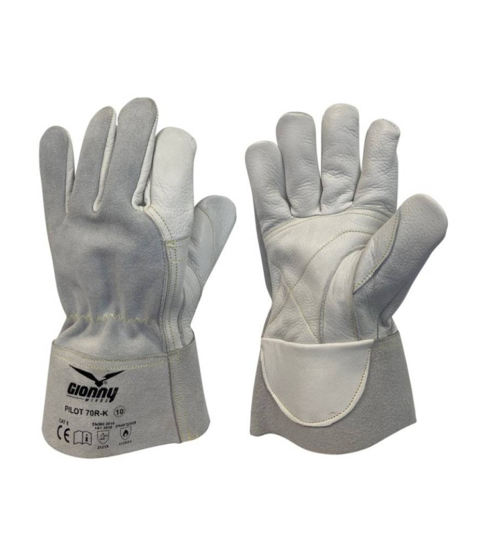 Rukavica s dlanom, palcem i kažiprstom od zrnate goveđe kože, sa stražnjom stranom od grube kože, ojačanje dlana, štitnik za palac, ojačanje za zaštitu zgloba od zrnate kravlje kože, manžeta od goveđe kože debljine od 7 cm i elastična traka na manžeti. Šavovi s pređom od aramidnog vlakna. Značajke: mekana, čvrsta, otporna. Prednosti: udobnost, jednostavnost upotrebe. Područja upotrebe: pogodna za rukovanje teškim, oštrim, grubim, abrazivnim i vrućim predmetima, za čišćenje postrojenja, stolarstvo i metalnu stolariju. Upotrebljava se u prisutnosti topline/vatre. Najmanja jedinica za prodaju: 1 tucet (12 parova).