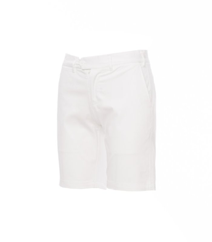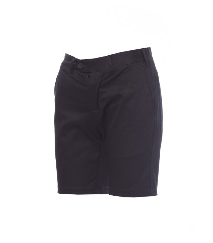 Zenske klasične bermude s francuskim džepovima, patentnim zatvaračem i gumbom za zatvaranje, petljama za pojas oko struka, dva ravno rezana stražnja džepa s gumbima.