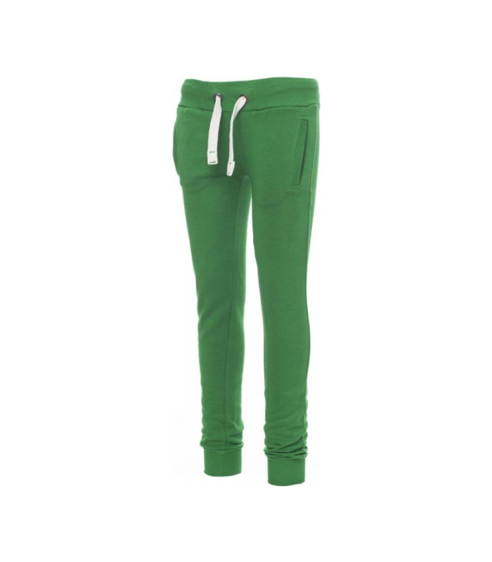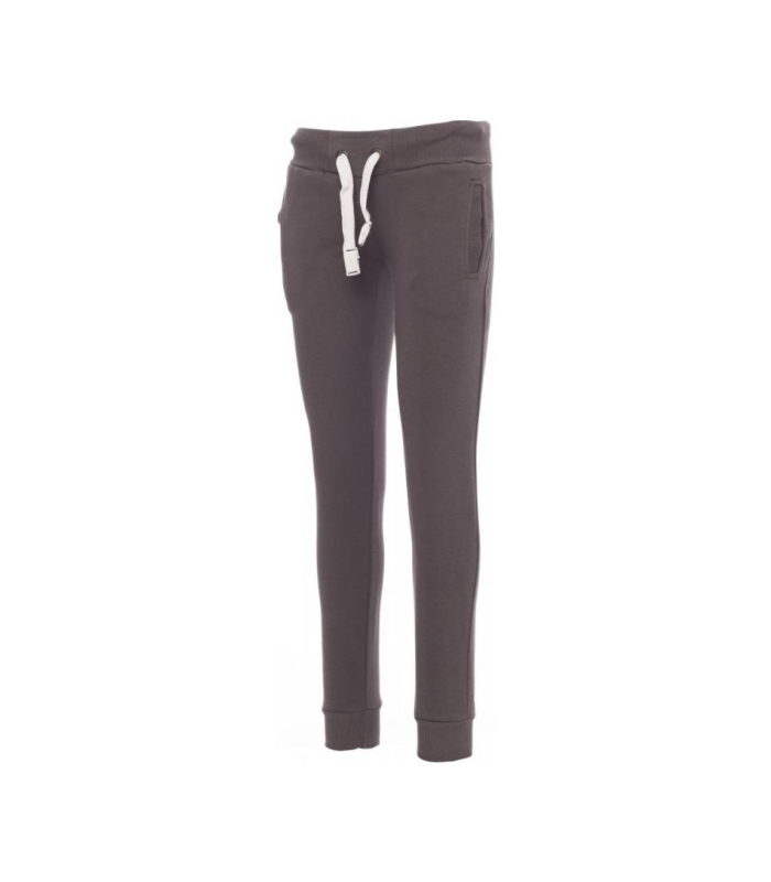 Ženske plišane hlače s rastezljivim rebrastim strukom i donjim dijelom nogavica, bijelom uzicom za stezanje sa šavovima u kontrastu i metalnim prstenovima, dva prednja rebrasta džepa i pojačanim šavovima.