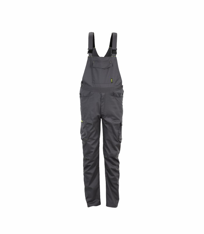 2 velika džepa, lijevi džep na bedru s preklopom i džepom na patentni zatvarač, desni džep na bedru sa žutim patentnim zatvaračem, 2 stražnja džepa s preklopom i zatvaračem na čičak, pojas s gumbima poput traperica, reflektirajuće aplikacije na desnom džepu na bedru, džep na prsima s preklopom i zatvaračem na čičak, naramenice s elastičnim gumenim umetcima, visoka leđa