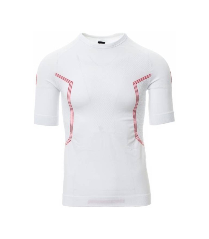 Muška termička majica kratkih raglan rukava s ovratnikom. Mekana i rastezljiva tkanina s posebnim strukturama na prsima i leđima, istaknuti motivi propelera na bokovima kako biste osigurala ispravna transpiracija i stalna termoregulacija. Rebrasti ovratnik, donji dio i rubovi rukava od istog materijala, radi veće udobnosti. Ergonomska cjevasta struktura i posebna nazubljenost na laktovima za osiguravanje savršenog prilagođavanja fizionomiji tijela.
