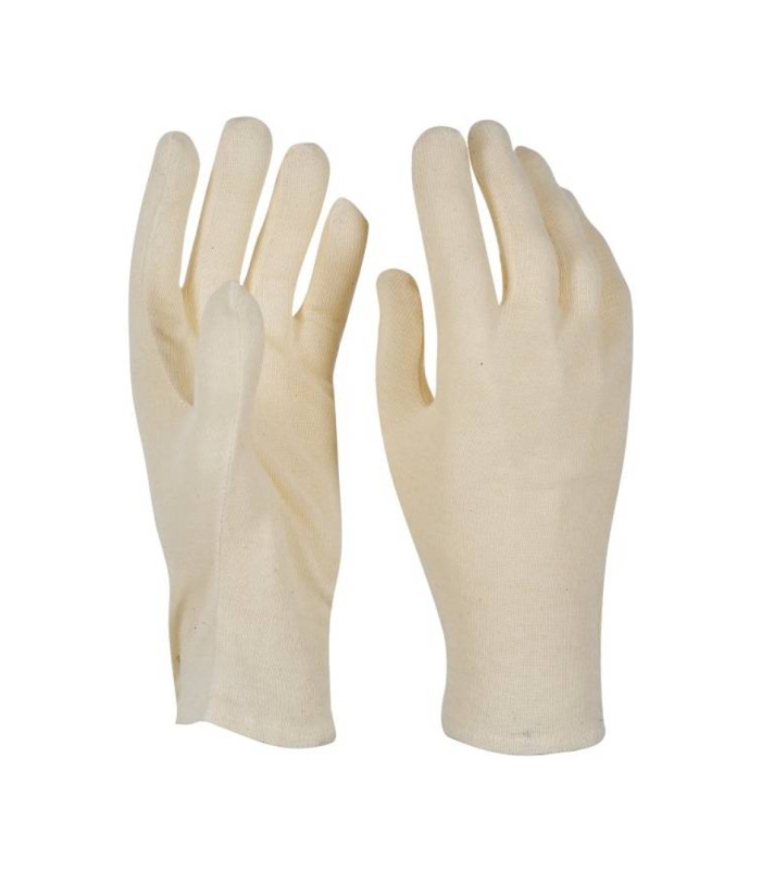 Pamučna podstava za rukavice, prirodne boje. Značajke: mekano. Jake strane: nosivost, osjetljivost. Područja primjene: generičke radnje u suhoj okolini. Najmanja jedinica za prodaju: 1 tucet (12 parova).