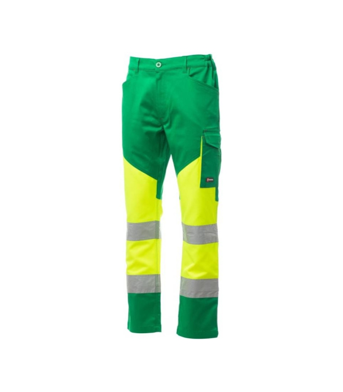 Hlače uniseks za sva godišnja doba u dvije boje, visoke vidljivosti, s reflektirajućim trakama, bočnom elastičnom trakom i petljama za pojas oko struka. Zatvaranje patentnim zatvaračem s plastičnim gumbom, dva oblikovana prednja džepa, jedan bočni džep sa sustavom zatvaranja „LOCK SYSTEM”, držač znački koji se može izvući i još jedan džep za dvostruku mjernu vrpcu. Dva stražnja džepa: jedan otvoren s reflektirajućim trakama i jedan s preklopom na čičak. Šavovi kontrastne boje. Trostruki šav na preponama i unutrašnjoj strani nogavice. Međunarodna veličina L ima unutrašnjost nogavice od 80 cm.