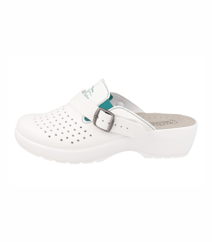 Ženske sanitarne natikače s remenom i podesivom elastikom, natikače s gornjištem i uloškom od materijala Evopell. Anatomski oblikovane i proizvedene uz korištenje 100 % obnovljive energije.